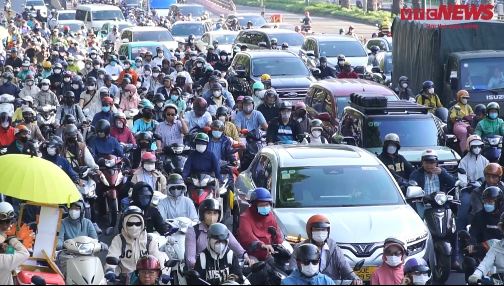 Kẹt xe ở TP.HCM: Len lỏi giữa dòng người đông đúc tìm lối thoát