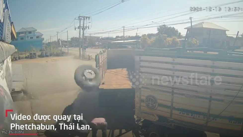 Lốp xe phát nổ văng vào mặt công nhân ở Thái Lan